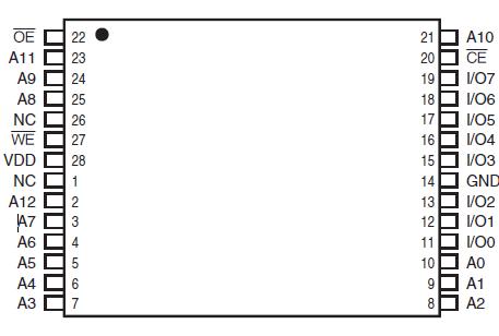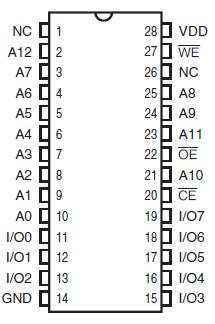 Easy memory expansion is provided by using one Chip Enable input, CE. The active LOW Write Enable (WE) controls both writing and reading of the memory.