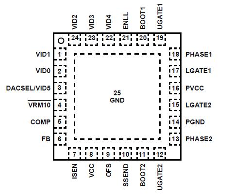 Outstanding features of this controller IC include programmable VID codes compatible with Intel VRM9, VRM10, as well as AMD's Hammer microprocessors, along with a system regulation accuracy of ±1%. The ISL8101, though, does not intrinsically allow for load-line regulation (no droop).