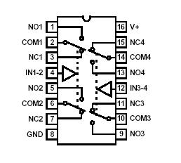 The Intersil ISL83699 device is a low ON-resistance, low voltage, bidirectional, Quad SPDT (Dual DPDT) analog switch designed to operate from a single +1.65V to +3.6V supply. Targeted applications include battery powered quipment that benefit from low on-resistance (0.26Ω), and fast switching speeds (tON = 10ns, tOFF = 7ns). The digital logic input is 1.8V logic-compatible when using a single +3V supply.
