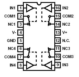 Features: • Pin Compatible Replacements for MAX391 - MAX393• Four Separately Controlled SPST Switches• Pin Compatible with DG411, DG412, DG413• ON Resistance (RON) . . . . . . . . . . . . 20Ω(Typ) 35Ω(Max)• RON Matching Between Channels. . . . . . . . . . ...