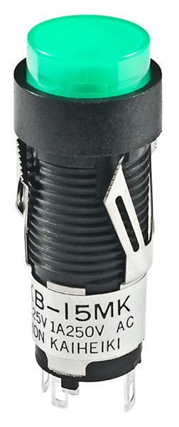 KB15MKW01-05-FB: Pushbutton Switches SPDT ON-(ON) RND GRN