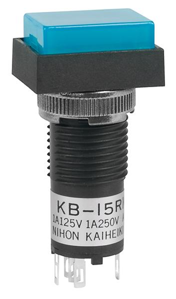 KB15RKW01-GG: Pushbutton Switches ON(ON) RECT BUSH MNT BLUE/BLUE CAP