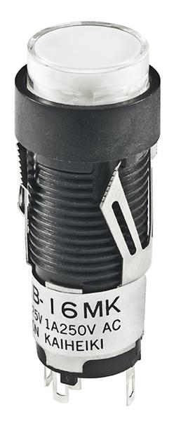 KB16MKW01-5F12-JB: Pushbutton Switches ON-ON RND SNAPIN 12V GRN LED CLR/WHT CAP