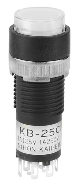 KB25CKW01-6G-JB: Pushbutton Switches DPDT ON(ON)ROUND BLUE LED CLR/WHT CAP