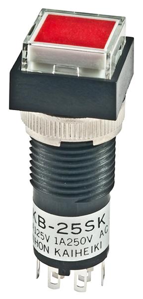 KB25SKW01-12-JC-RO: Pushbutton Switches ON(ON) SQ BUSH MOUNT 12V LAMP CLR/RED CAP