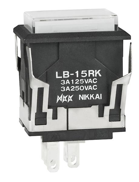 LB15RKW01-5C24-JB: Pushbutton Switches ON(ON) RECT BLK 24V RED LED CLR/WHT CAP