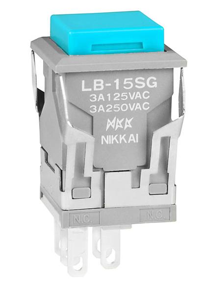 LB15SGW01-G: Pushbutton Switches SPDT ON-(ON) GRAY SQUARE BLUE CAP