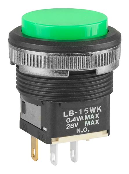 LB15WKG01-FJ: Pushbutton Switches SPDT ON-(ON) GRN Au PNL SEAL BLK HOUSING