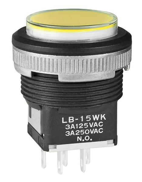 LB15WKW01-JE: Pushbutton Switches ON-(ON) ROUND PANEL SEAL CLEAR/YELLW CAP