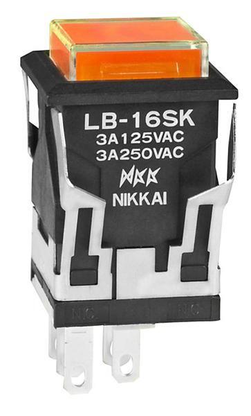 LB16SKW01-5D12-JD: Pushbutton Switches ON-ON SQ 12V AMBER LED CLEAR/AMBER CAP