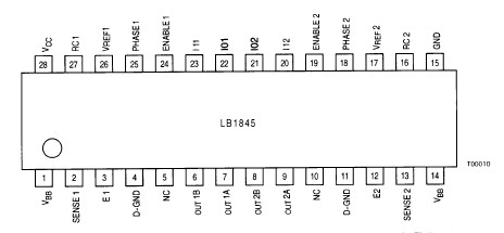 LB1845: Features: • PWM current control (fixed off time scheme)• Digital load current selection function• Sustained output voltage: 45 V• Built-in thermal shutdown circuitPinoutSpeci...