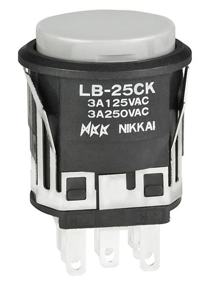 LB25CKW01-H: Pushbutton Switches DPDT ON-(ON) BLACK ROUND GRAY CAP