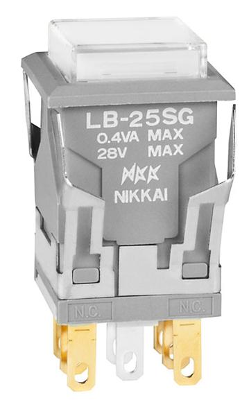 LB25SGG01-5F24-JB: Pushbutton Switches DPDT ON-(ON) SQ 24V GRN LED CLR/WHT CAP