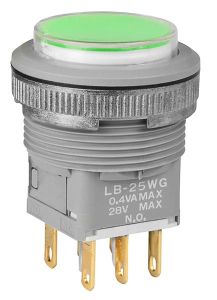 LB25WGG01-5F24-JF-RO: Pushbutton Switches ON(ON)GRY PNL SL 24V GRN LED CLR/GRN CAP