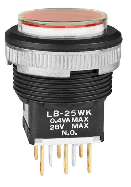 LB25WKG01-5C12-JC: Pushbutton Switches SPDT ON-(ON) 0.4VA 12V RED RND PNL SEAL