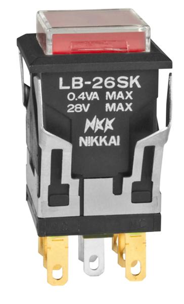 LB26SKG01-5C24-JC: Pushbutton Switches ON-ON SQ BLACK 24V RED LED CLR/RED CAP