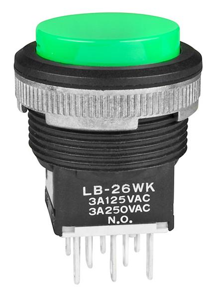 LB26WKW01-05-FJ: Pushbutton Switches ON-ON BLK PANEL SEAL 5V LAMP GRN/CLR CAP