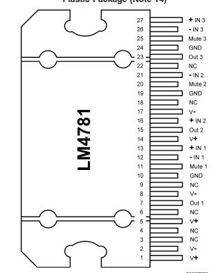 The LM4781 is a three channel audio amplifier capable of typically delivering 35W per channel of continuous average