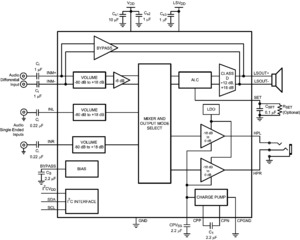 The LM49151 features separate volume controls for the loudspeaker and headphone inputs. Mode selection, shutdown control, and volume are controlled through an I