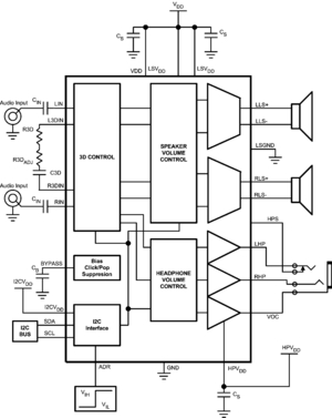 The LM49270 is a fully integrated audio subsystem designed for stereo multimedia applications. The LM49270 combines a 2.2W stereo Class D amplifier with a 155mW stereo headphone amplifier, volume control, headphone sense, and National's unique 3D sound enhancement into a single device. The LM49270 uses flexible I
