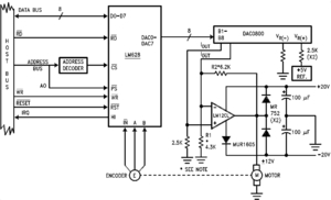 The LM628/LM629 are dedicated motion-control processors designed for use with a variety of DC and brushless DC servo motors, and other servomechanisms which provide a quadrature incremental position feedback signal. The parts perform the intensive, real-time computational tasks required for high performance digital motion control. The host control software interface is facilitated by a high-level command set. The LM628 has an 8-bit output which can drive either an 8-bit or a 12-bit DAC. The components required to build a servo system are reduced to the DC motor/actuator, an incremental encoder, a DAC, a power amplifier, and the LM628. An LM629-based system is similar, except that it provides an 8-bit PWM output for directly driving H-switches. The parts are fabricated in NMOS and packaged in a 28-pin dual in-line package or a 24-pin surface mount package (LM629 only). Both 6 MHz and 8 MHz maximum frequency versions are available with the suffixes -6 and -8, respectively, used to designate the versions. They incorporate an SDA core processor and cells designed by SDA.