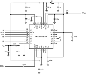 LMX2515 includes a voltage controlled oscillator (VCO), a loop filter, and a fractional-N RF PLL based on a delta sigma modulator. In concert these blocks form a closed loop RF synthesizer system. The LMX2515LQ0701 supports the Japan PDC800 band and the LMX2515LQ1321 supports Japan PDC1500 band.