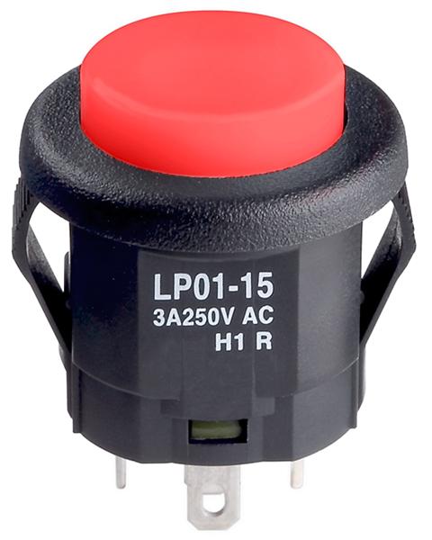 LP0115CMKW015CB: Pushbutton Switches SPDT ON-(ON) 3A RED ILLUM SNAP-IN MOUNT