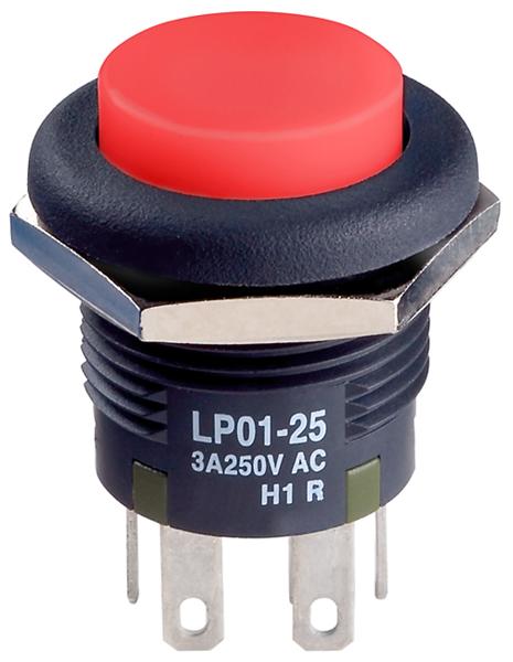LP0125CCKW015CB: Pushbutton Switches DPDT ON-(ON) 3A RED ILLUM BUSHING MOUNT
