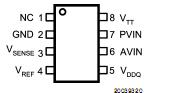 Features: Low output voltage offsetWorks with +5v, +3.3v and 2.5v rails Source and sink current Low external component count No external resistors required Linear topology Available in SO-8, PSOP-8 or LLP-16 packages Low cost and easy to useApplication DDR Termination Voltage SSTL-2 SSTL-3PinoutS...