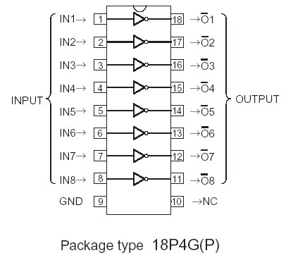 M63805FP: Features: `Three package configurations (P, FP, and KP)`Medium breakdown voltage (BVCEO35V)`Synchronizing current (I C(max) = 300mA)`With zener diodes`Low output saturation voltage`Wide operating te...