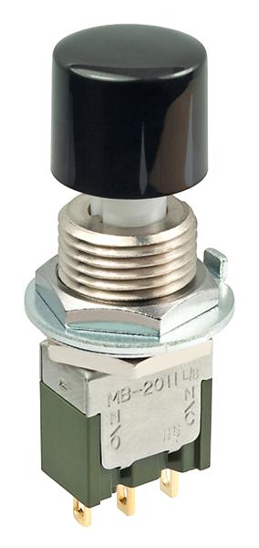 MB2011SB1G01-DA-RO: Pushbutton Switches ON-(ON) LRG BSHNG .52 BLK CAP LUG .4VA