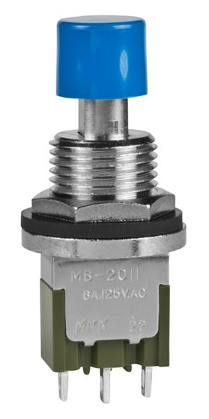 MB2011SB3W01-CG: Pushbutton Switches ON(ON) 12MM SPLSHPRF BSHG SLDR.39 BLU CAP