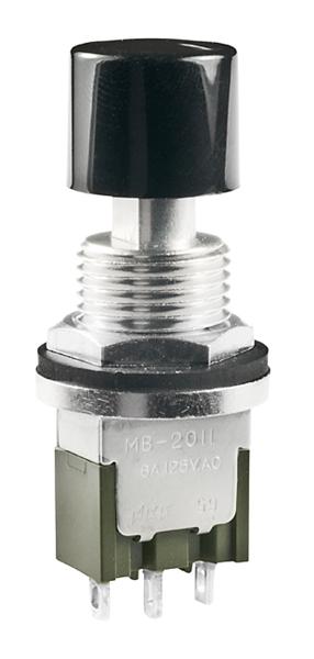 MB2011SB3W01-DA-RO: Pushbutton Switches ON(ON) 12MM SPLSHPRF BSHG SLDR.52 BLK CAP