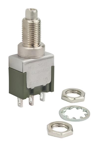 Pushbutton Switches SPDT ON-(ON) 6A BUSHING SOLDER LUG