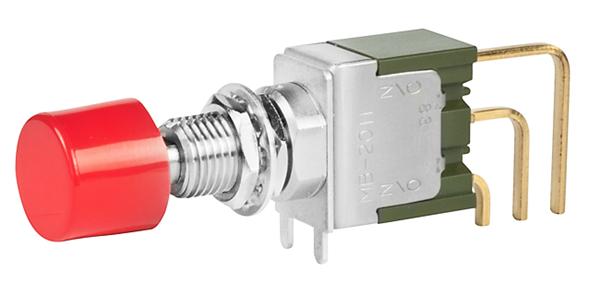 Pushbutton Switches ON(ON) .335" BUSHING VERT PC .394 RED CAP
