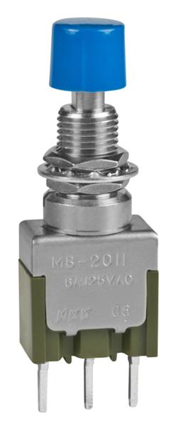 MB2011SS1W03-BG: Pushbutton Switches ON(ON) .335 BSHG PC .315 BLUE CAP 6A