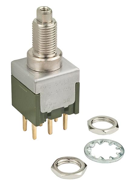 Pushbutton Switches ON-(ON) 6A & .4VA D-FLAT BUSHING PC