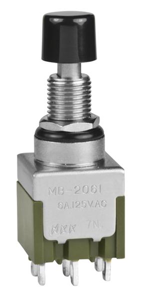 MB2061SD3W01-BA: Pushbutton Switches DPDT ON-(ON) 6A .315" BLACK CAP