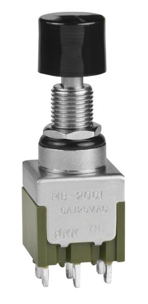 MB2061SD3W01-CA: Pushbutton Switches ON-(ON) 6A .394 BLK CAP SPLSHPRF SLDR LG