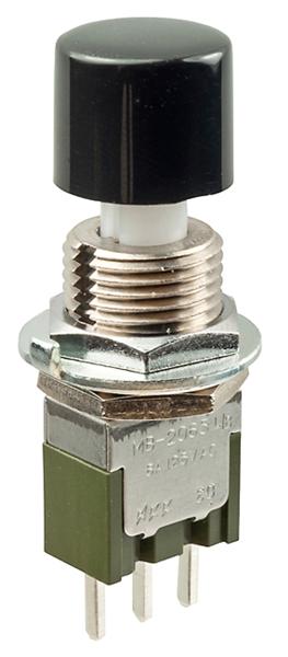 Pushbutton Switches ON(ON).335 FLTD BSHG SOLDER .315" BLK CAP