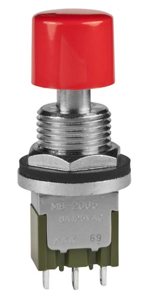 MB2065SB3W01-DC: Pushbutton Switches ON-ON 12MM SPLSHPROF BSHG SLDR.52 RED CAP