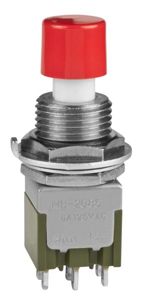 MB2085SB1W01-CC: Pushbutton Switches DPDT ON-ON 12MM BSHG SLDR .394 RED CAP 6A
