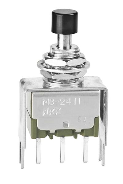 MB2411E1W13-FA: Pushbutton Switches ON(ON) .28 FLTD BSHG BRKT PC .201 BLK CAP