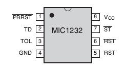 The power supply line of MIC1232 is monitored with a comparator and an internal voltage reference. RST is forced low when an out-of-tolerance condition exists and remains asserted for at least 250ms after VCC rises above the threshold voltage (4.5V or 4.75V). The RST pin will remain logic low with VCC as low as 1.4V.