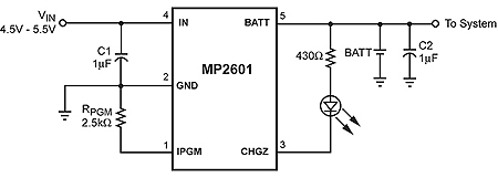 MP2601: Pinout DescriptionThe MP2601 is a low cost single cell Li-ion battery charger IC suitable for low charge current applications. It features constant current (CC) and constant voltage (CV) charging mo...