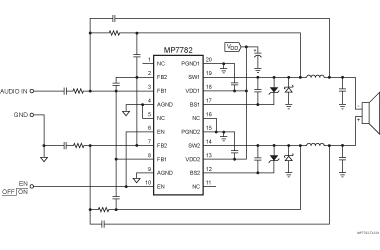 MP7782: PinoutDescriptionThe MP7782 is a mono, 50W Class D Audio Amplifier. It is one of MPS? second generation fully integrated audio amplifiers which dramatically reduces solution size by integrating four...
