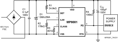 MP8001: PinoutDescriptionThe MP8001 is an IEEE 802.3af POE compliant Powered Device (PD) controller. It includes detection and classification modes as well as a 100V output pass MP8001 having a temperature ...