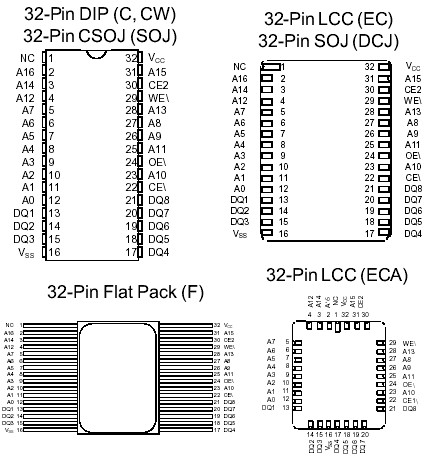 Features: • High Speed: 12, 15, 20, 25, 35, 45, 55 and 70 ns• Battery Backup: 2V data retention• Low power standby• High-performance, low-power CMOS process• Single +5V (+10%) Power Supply• Easy memory expansion with CE1\, CE2, and OE\options.• All inputs ...