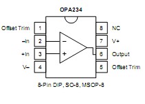 OPA234: Features: `WIDE SUPPLY RANGE: Single Supply: VS = +2.7V to +36V Dual Supply: VS = ±1.35V to ±18V`GUARANTEED PERFORMANCE: +2.7V, +5V, and ±15V `LOW QUIESCENT CURRENT: 250A/amp`LOW INPUT BIAS CURRENT:...