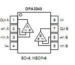 The single (OPA343) packages are the tiny 5-lead SOT-23-5 surface mount and SO-8 surface mount. The dual (OPA2343) comes in the miniature MSOP- 8 surface mount and SO-8 surface mount. The quad (OPA4343) packages are the space-saving SSOP-16 surface mount, SO-14 surface mount, and TSSOP-14 surface mount. All are specified from -40 to +85 and operate from -55 to +125. A SPICE macromodel is available.